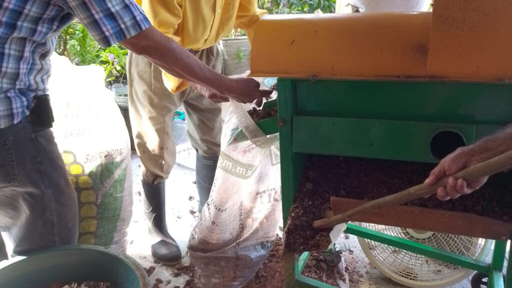 Dirección de Desarrollo llevó a cabo descascarillado de achiote en beneficio de productores del Ejido “Jalapa”