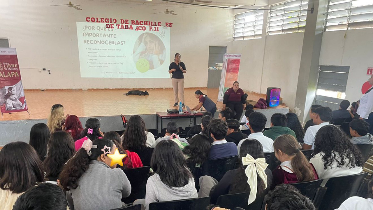 12 noviembre, 2025La Dirección de Atención a la Mujer, en colaboración con el Centro Libre Jalapa, visitaron el Colegio de Bachilleres de Tabasco, Plantel 11, donde impartieron dos importantes pláticas dirigidas a las y los estudiantes: