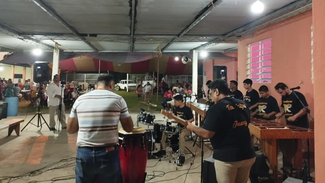 Como parte de esta celebración, se presentó con gran entusiasmo la Marimba Flor del Dulce, agrupación representativa de la Casa de Cultura, integrada por talentosos alumnos y alumnas que continúan fortaleciendo su aprendizaje artístico y promoviendo el amor por la música tradicional tabasqueña.